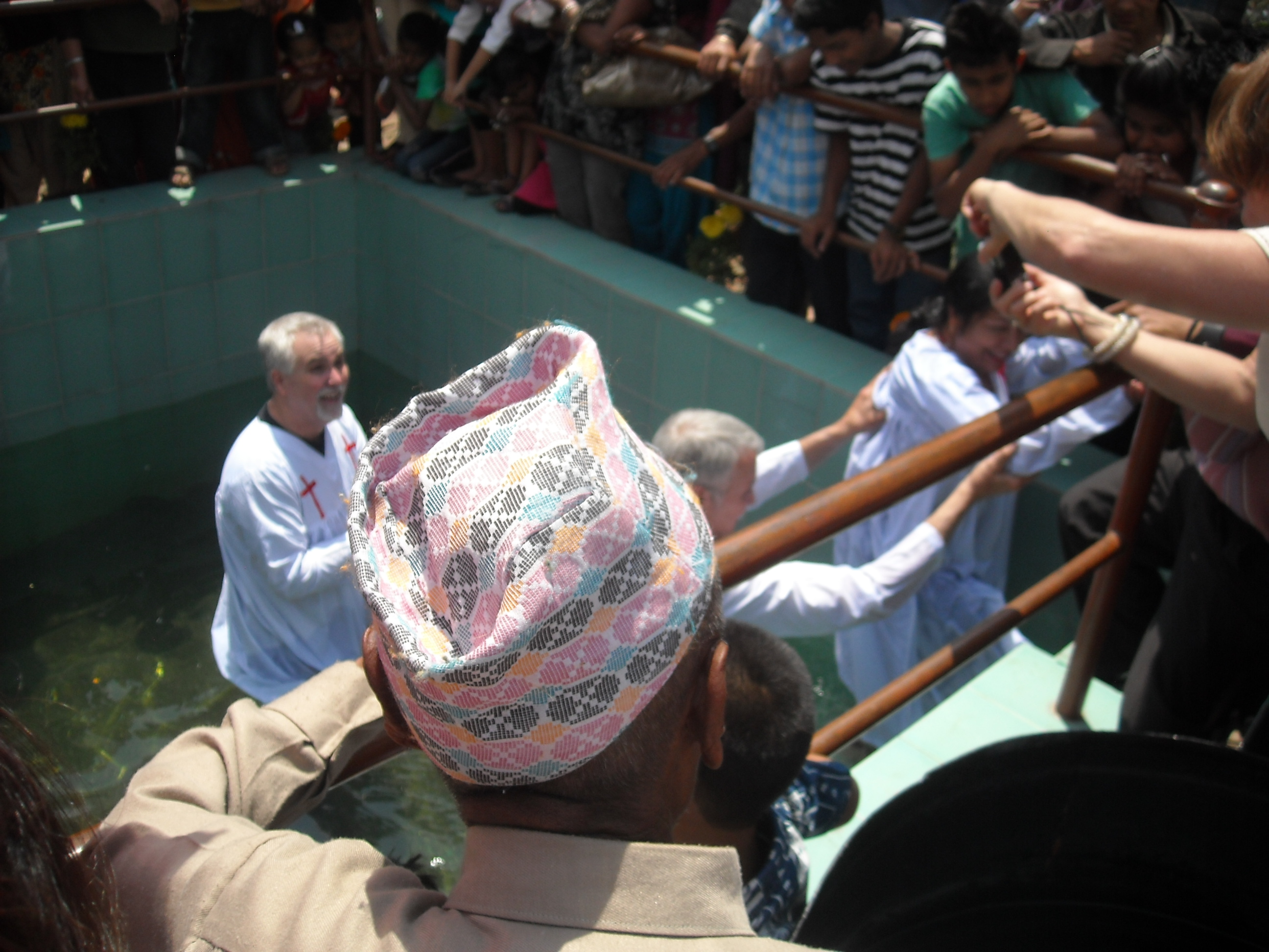 Yesterday Vic and I had the great privilege of baptizing Pramita’s parents. Mr. Mothay has a problem with his leg that could be life threatening if it gets wet (due to the risk of infection). He still was eager to be baptized so we baptized him in a large water tank sans legs! Mrs. Mothay was baptized legs and all! These are 2 precious people and the whole family is rejoicing. Mrs. Mothay kept saying afterward “I feel so light, I feel so light – no more burdens do I carry”! Mr. Mothay repeated “very happy, now I’m very happy, I only want to follow Jesus”. To think that 4 short months ago they were strict followers of Hinduism and now every idol has been  cleansed! What a striking example of our Sovereign God at work!  (See more pics below)